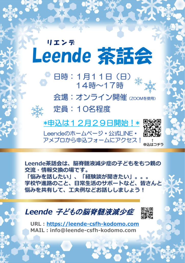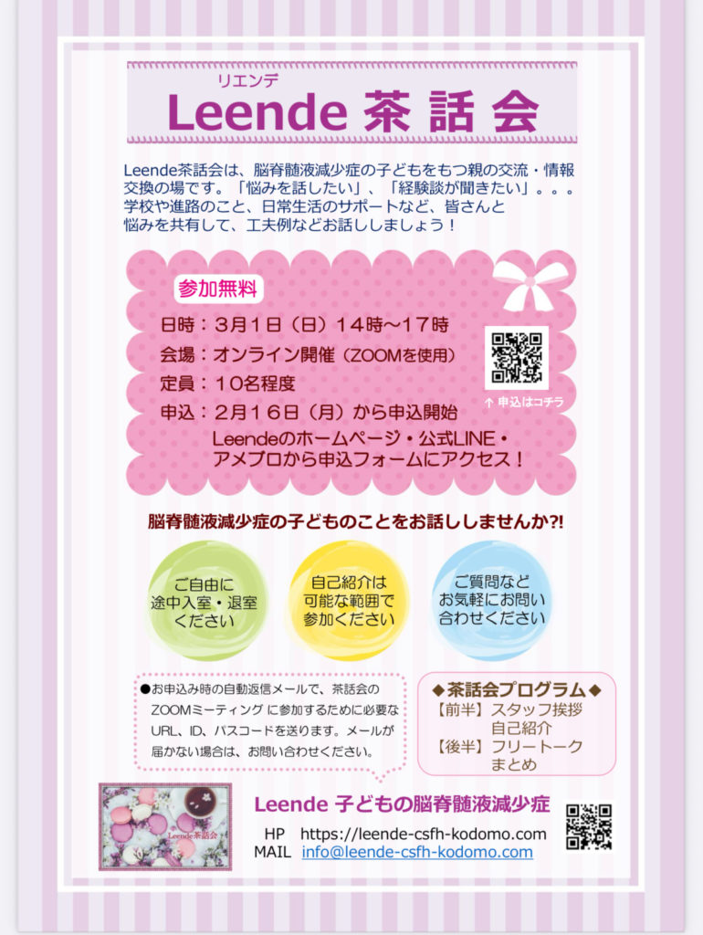 - 11月度「Leende茶話会」のご感想11月23日(日)に初参加者1名を含む7名のお父様・お母様をお迎えしまして、2025年最後の「Leende茶話会」を開催しました。今の時代、子どもの病気のことはSNSやインターネットを通じて多くの情報を得ることができます […]